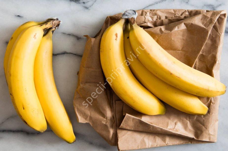 Спелость бананов определяется по насыщенному желтому цвету. Кожура плода должна быть блестящей и гладкой.