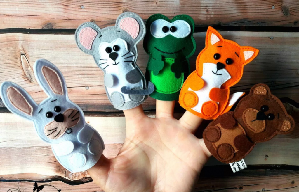пальчиковые игрушки. Чтение книжек быстро утомляет кроху, но занятие легко превращается в весёлый спектакль, если сюжет сказки сопровождать маленькими игрушками, надетыми на пальцы взрослого. Зверушки и человечки будут смеяться, кланяться, хлопать в ладоши. Это надолго увлечёт ребёнка. Наборы пальчиковых игрушек есть в продаже, но можно изготовить их самостоятельно – сшить или связать.