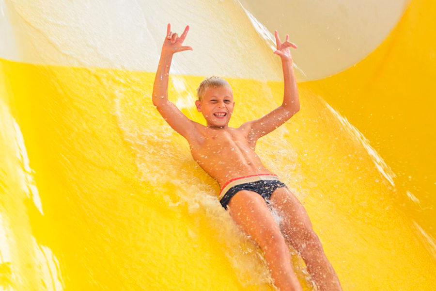 Для детей имеются разные бассейны, глубина которых не превышает 80 см. Все зависит от возрастной категории ребенка. Если ребенок плавает в бассейне, то за ним присматривает инструктор, а взрослые имеют возможность прокатиться с таких нашумевших горок, как Камикадзе и Банзай высотой в 21 м.