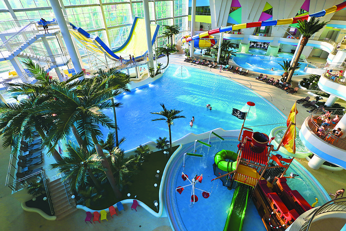 Комплекс включает 12 бассейнов, 18 разнообразных горок, где можно найти развлечения на любой вкус, спокойные и экстремальные. Изюминка проекта Медленная река с расположением вдоль всего здания. По ней можно попасть в любой из бассейнов в развлекательной зоне. Уединенный отдых предусмотрен в Кают-компании, здесь же можно отметить праздник в кругу друзей.