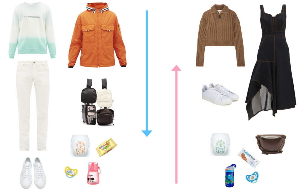 Я всегда за свободные руки и здоровую спину, так что запасной подгузник или трусы, пачка салфеток и соска прекрасно поместятся в belt bag или небольшой рюкзак. Опять же никакой еды, только вода в бутылках с карабинами, которые можно зацепить за джинсы или сумку.
