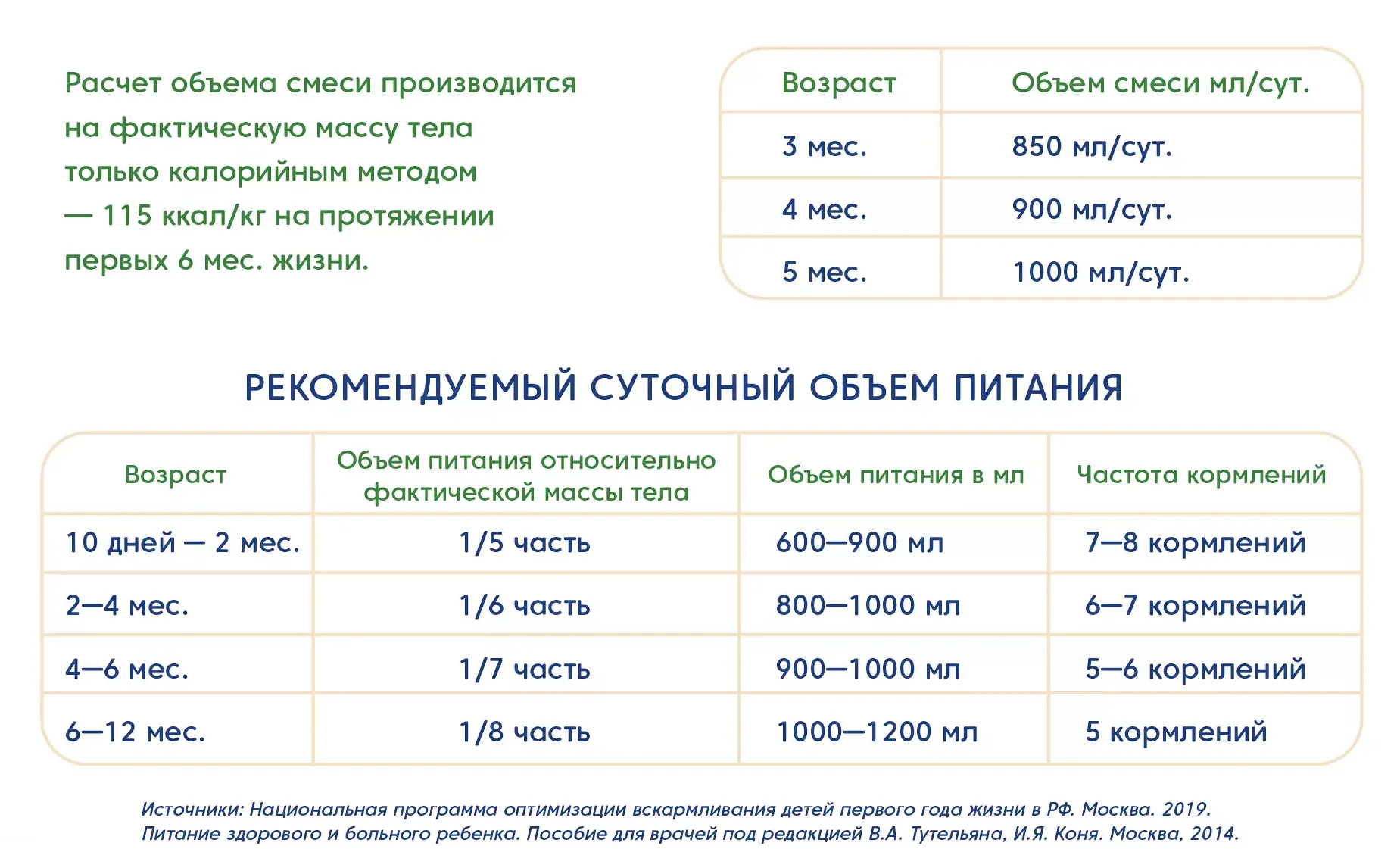 Если малышу 5 месяцев, дозу прикорма увеличивают на 10 миллилитров, и такое же количество добавляют спустя следующие 4 недели. Педиатры не советуют давать смесь ребенку ночью, поскольку именно в этот период суток у матери вырабатывается больше грудного молока.