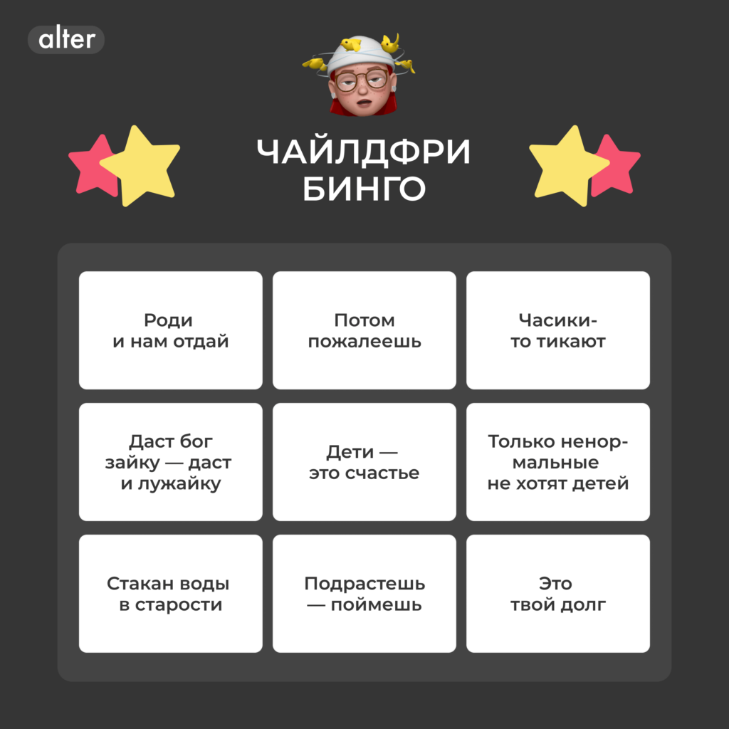 А пока что всем, кто выбрал для себя позицию чайлдфри, придётся быть осторожнее и деликатнее – десять раз думать прежде, чем что-то писать в соцсетях о себе и своём образе жизни.