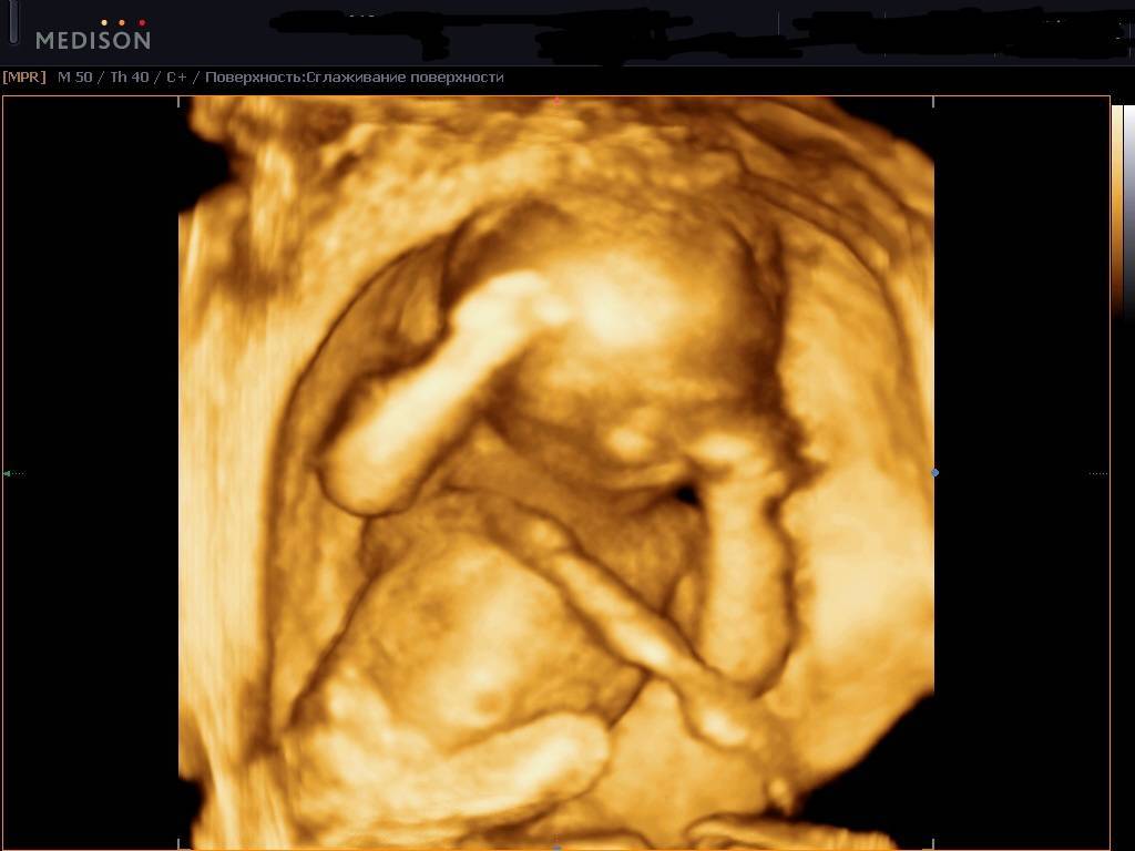 Проверяют во время исследования и развитие ребенка, его фетометрию: бипариетальный и лобно-затылочный размеры, окружность живота и головы, длину самых крупных костей.