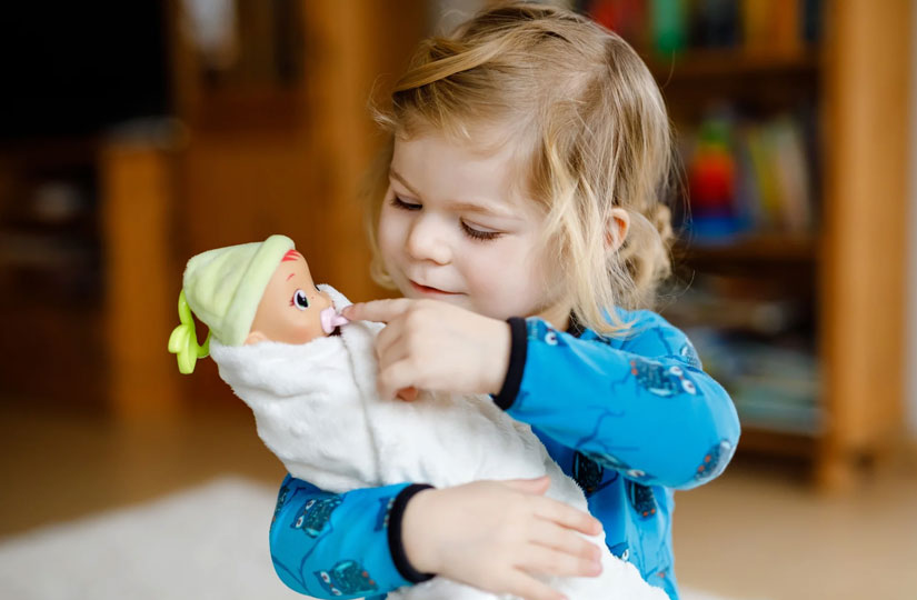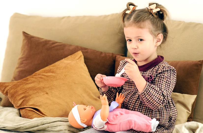 Почти все малыши инсценируют в игре с куклами то, что происходит в их реальной жизни: кормление, переодевание, укладывание спать, приучение к туалету и другим правилам гигиены