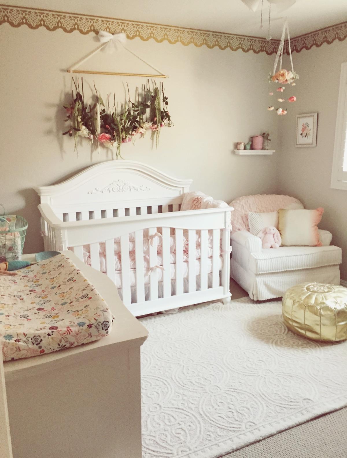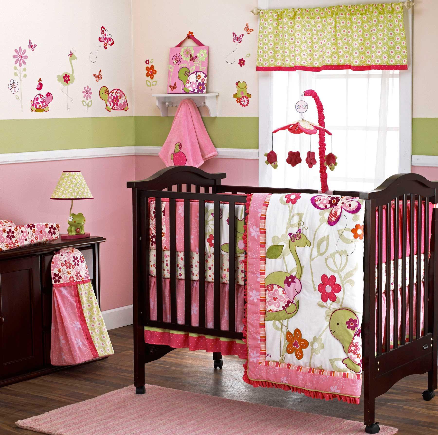 Зачастую кроватку для новорожденной девочки декорируют в теплых и светлых оттенках (от нежно-розового до фуксии). Мебель выглядит более легкой, воздушной и уютной. Можно изобразить растительные узоры, бабочки, цветы. Приветствуются рисунки с шариками, красивыми принцессами, бантами, улыбающимися детьми и прочими «девчачьими радостями».