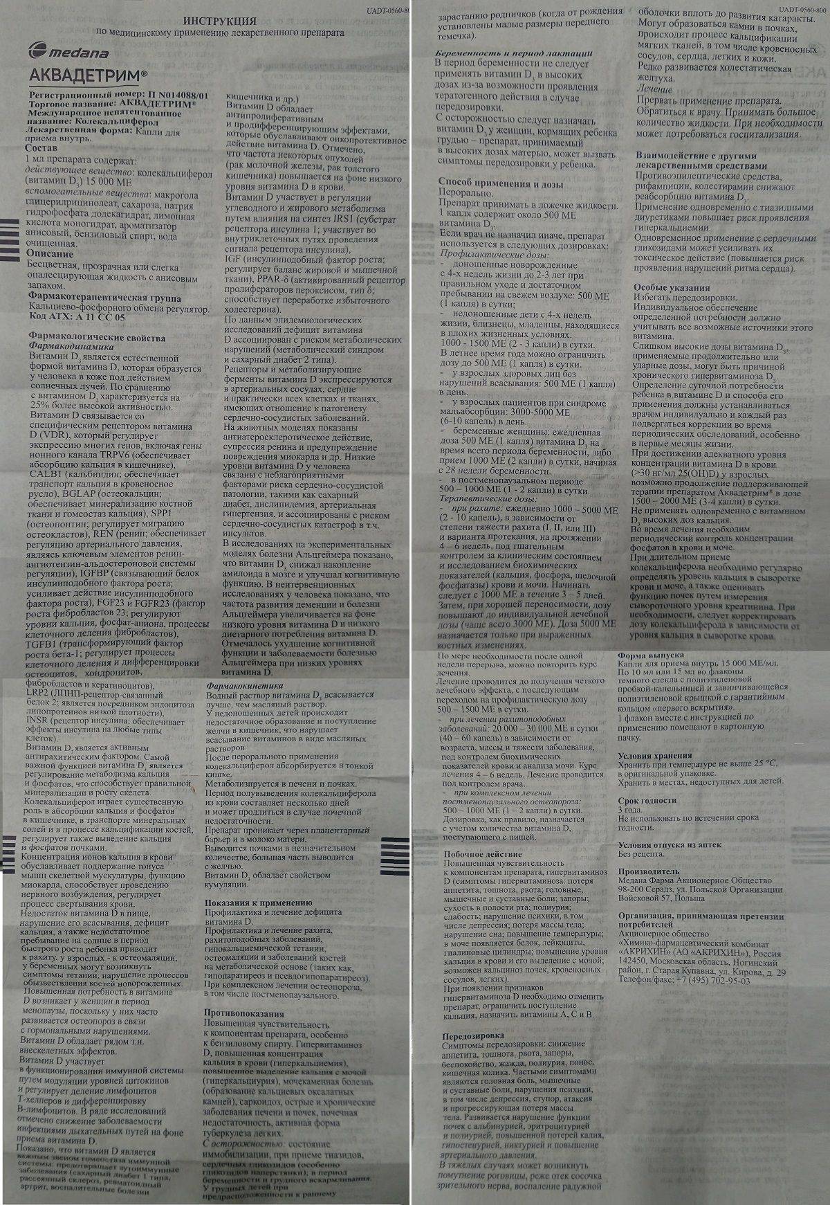 Общие характеристики препарата Аквадетрим, содержащего витамин Д