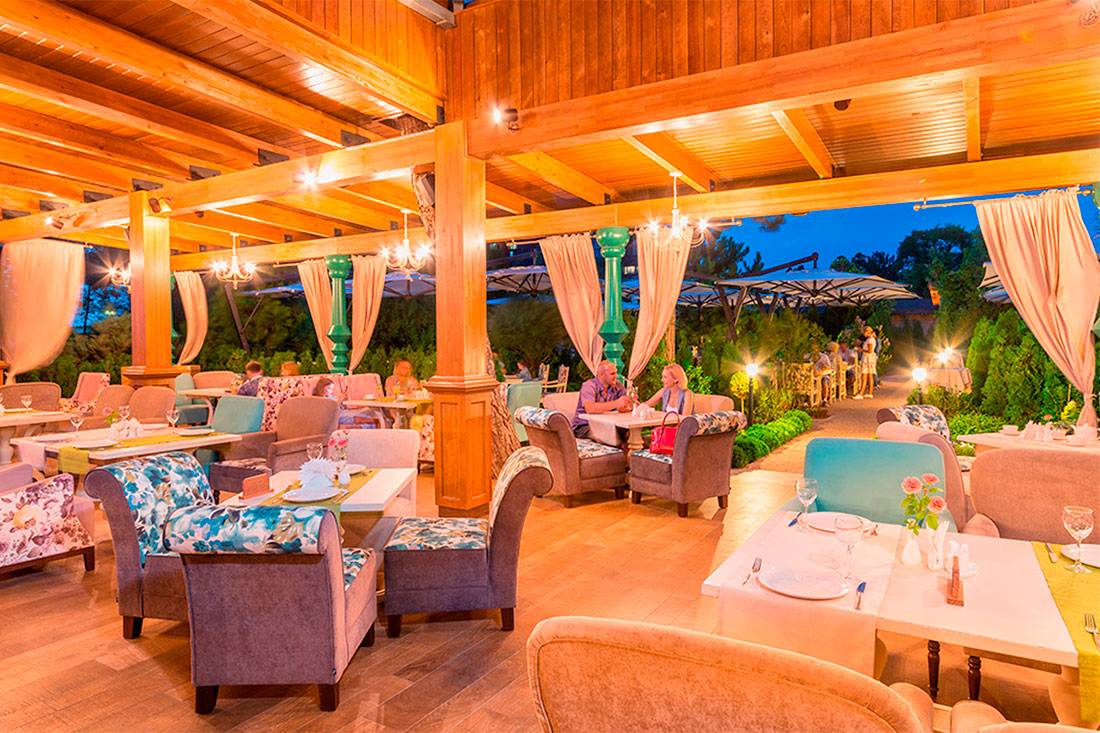 В меню преобладает европейская и русская кухня. Всегда есть вкусные блюда из рыбы и морепродуктов. Большой выбор свежих десертов, ароматного кофе и чая. В винной карте представлены местные, грузинские и итальянские вина.