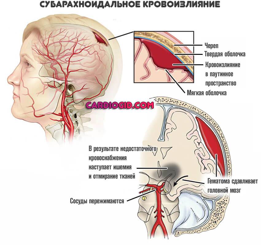 Возможен геморрагический инсульт с нарушением анатомической целостности сосудов, их разрывом, кровоизлиянием и формированием гематомы.