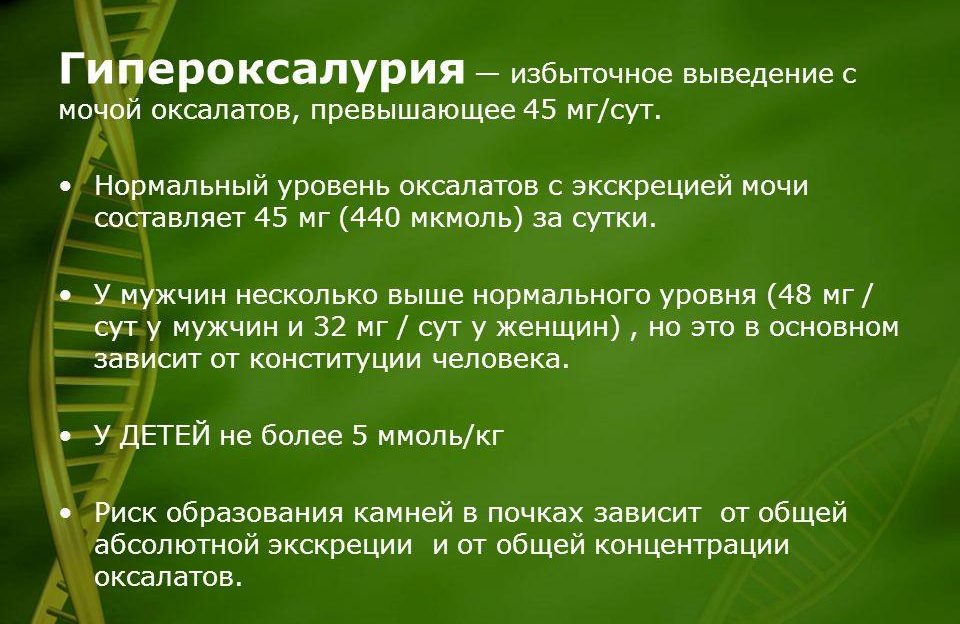 - гипероксалурия и гипекальциурия.