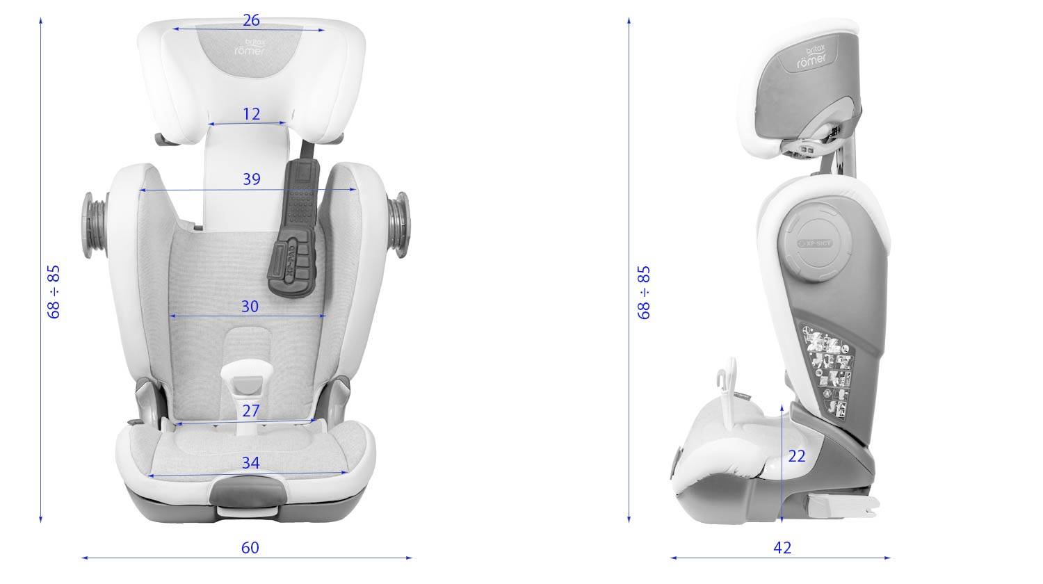 Приспособление для перевозки детей KidFix XP Sict от британо-германской компании Britax Römer относится к группе «2 — 3» и предназначается для путешественников примерно с трёхлетнего и до двенадцатилетнего возраста. Вес маленького пассажира от 15 до 36 килограммов.