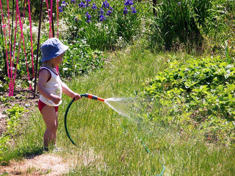 Привлекайте ребенка к выполнению посильных для него работ по дому и в огороде. Это может быть мытье посуды, организация собственной грядки или клумбы, полив растений, сбор ягод. Не забывайте и об отдыхе для всей семьи: установите на дачной территории небольшой надувной бассейн, повесьте качели, оборудуйте площадку с песком для самых маленьких или баскетбольный щит с кольцом для детей постарше.