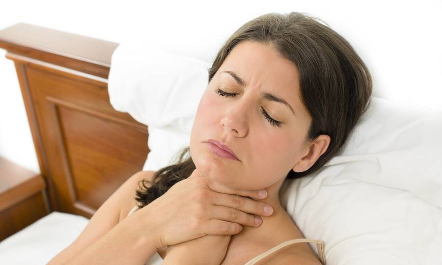 - при боле в горле, дышать следует ртом, медленно и ровно;