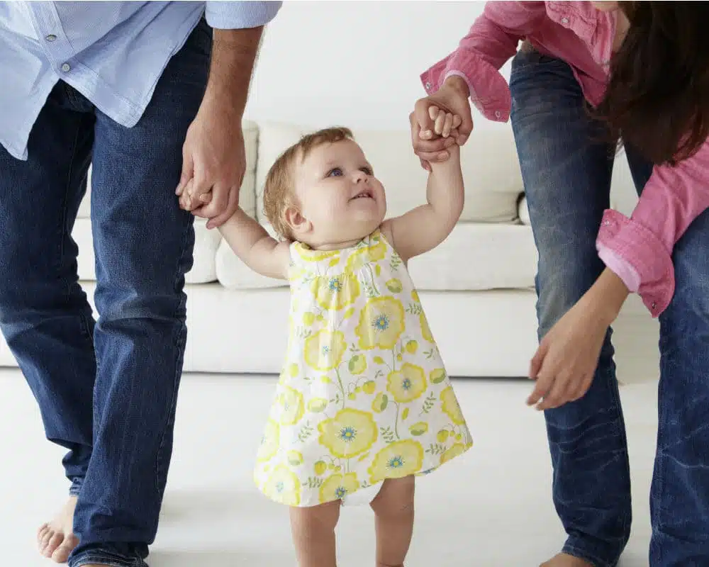 - При беге и ходьбе кроха не спотыкается и не падает, поскольку стал лучше держать равновесие и научился смотреть под ноги.
