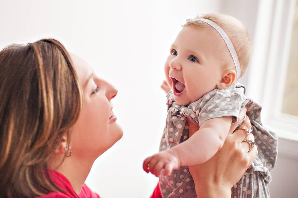 Малыши улыбаются, громко смеются, визжат. В этот момент необходимо поддержать своего кроху в его стремлении общаться, больше говорить с ним, поощрять его речевую активность.