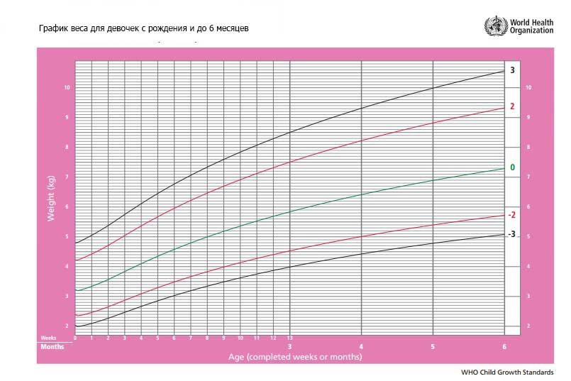 график веса для девочек с рождения и до 6 месяцев по нормам ВОЗ