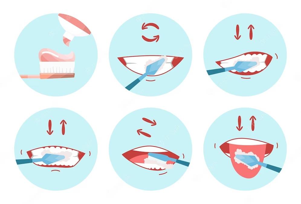 - переднюю и заднюю часть зубов чистите “выметающими” движениями — от десен к краешку