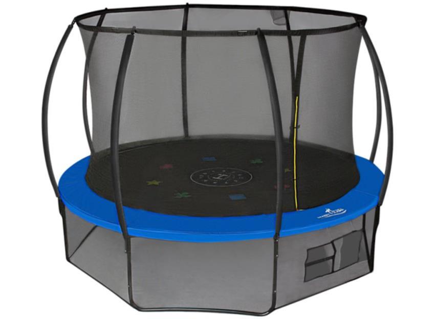 Самый надежный производитель и проверенный бренд, выпускающий лучшие батуты. Диаметр данной модели 365 см, высота нейлоновой защитной сетки — 170 см, а максимально дозволенная нагрузка — 160 кг. Ножки сооружения (12 шт), из оцинкованной стали, количество пружин — 80 шт, что обеспечит комфорт во время кувырканий. Мат выполнен из полипропилена, также к батуту прилагается лестница.