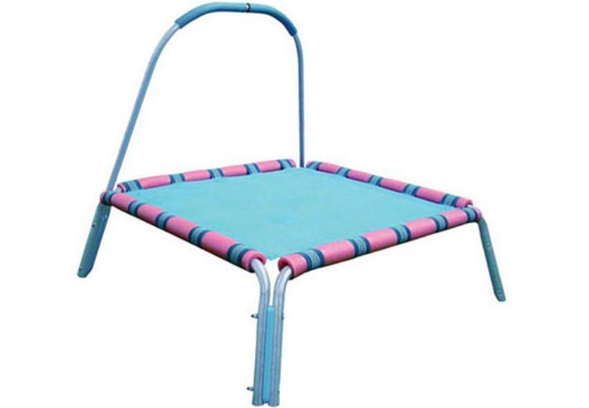 Каркасный детский батут, рекомендуемый возраст от 3-ех лет, максимальной нагрузкой до 35 кг. Высота батута с держателем — 850 мм, металлическая ручка оснащена мягкой насадкой. Каркас изделия выполнен из оцинкованной трубы.