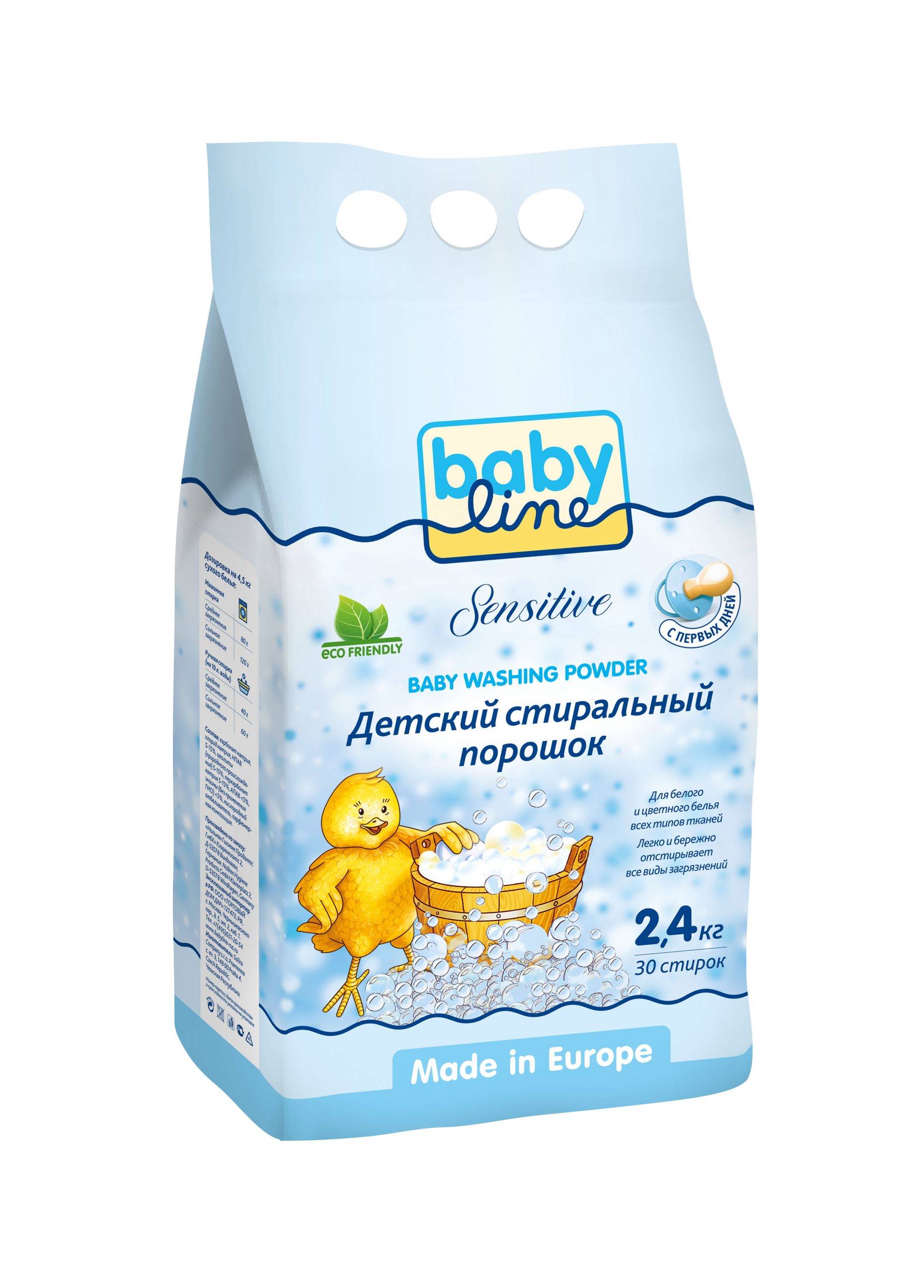 Babyline сделан на основе натурального мыла и подходит для всех типов тканей.