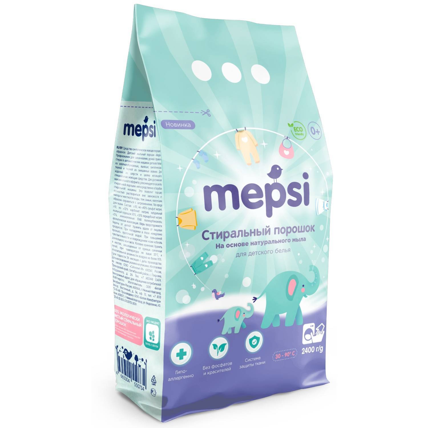 - «Мир детства». Позиционируется как порошок для новорожденных, который сохраняет яркость детских вещей и качественно удаляет имеющиеся загрязнения. В его составе отсутствуют красители и ароматизаторы, хорошо выполаскивается при ручной или машинной стирке. Подходит для всех типов тканей.