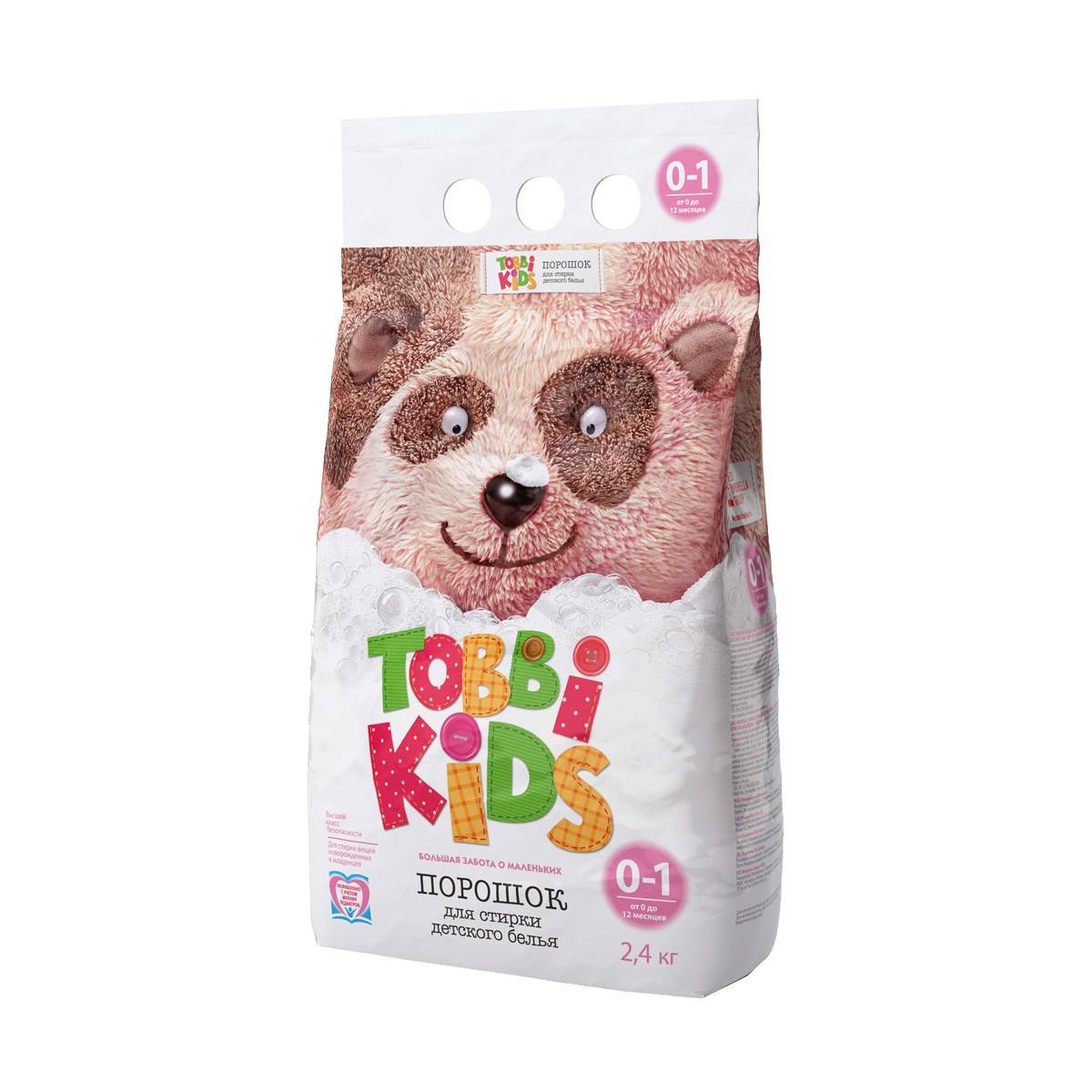 Порошок «Tobbi Kids» подходит для аллергиков и делится на возрастные категории: