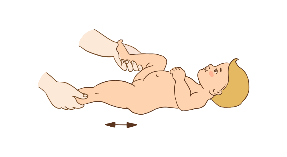 . Аккуратно придерживайте ножку ребёнка за голеностопный сустав и проводите подушечками пальцев по его ступне. Малыш будет сгибать и разгибать пальчики ног.
