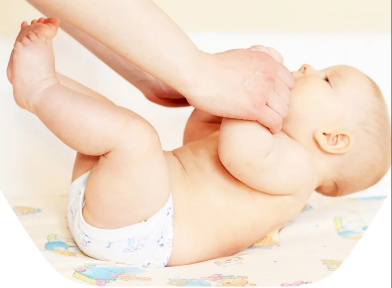 Снова переворачиваем ребёнка на спину и поглаживаем живот лёгкими движениями по ходу часовой стрелки.