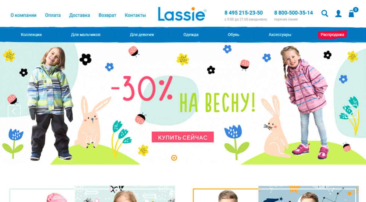 Крупнейший онлайн магазин в России с одеждой для детей и малышей. Вы можете выбрать среди сотен товаров одноименного бренда Lassie. Благодаря большому количеству категорий легко выбрать подходящую вещь для вашего ребенка. Куртки, брюки, кроссовки и кеды для мальчиков. Комбинезоны, комплекты и сандалии для девочек.