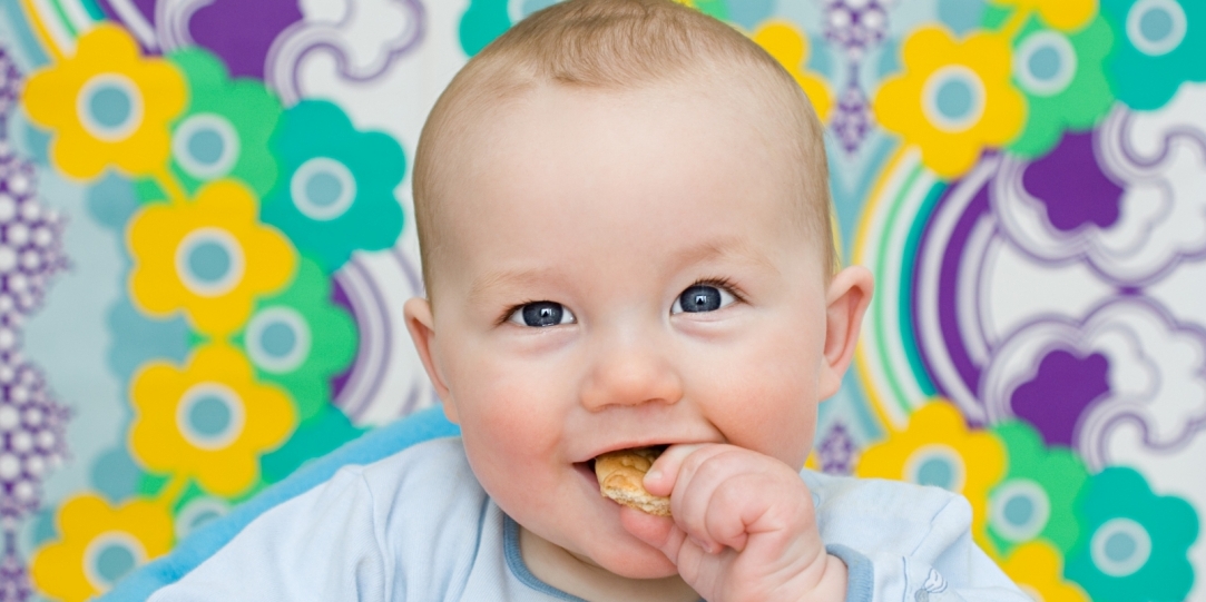 нужна твердая пища – кусочки мягких фруктов, детские печенья, которые быстро размякнут и не застрянут в горле. Он будет брать их ручкой и пытаться попасть себе в рот. Можно пробовать давать ложку с пюре ему в ручку, но не ждите особых успехов. Кружка-непроливайка в этом возрасте лучшая замена бутылочке и первый шаг к умению пить из чашки.