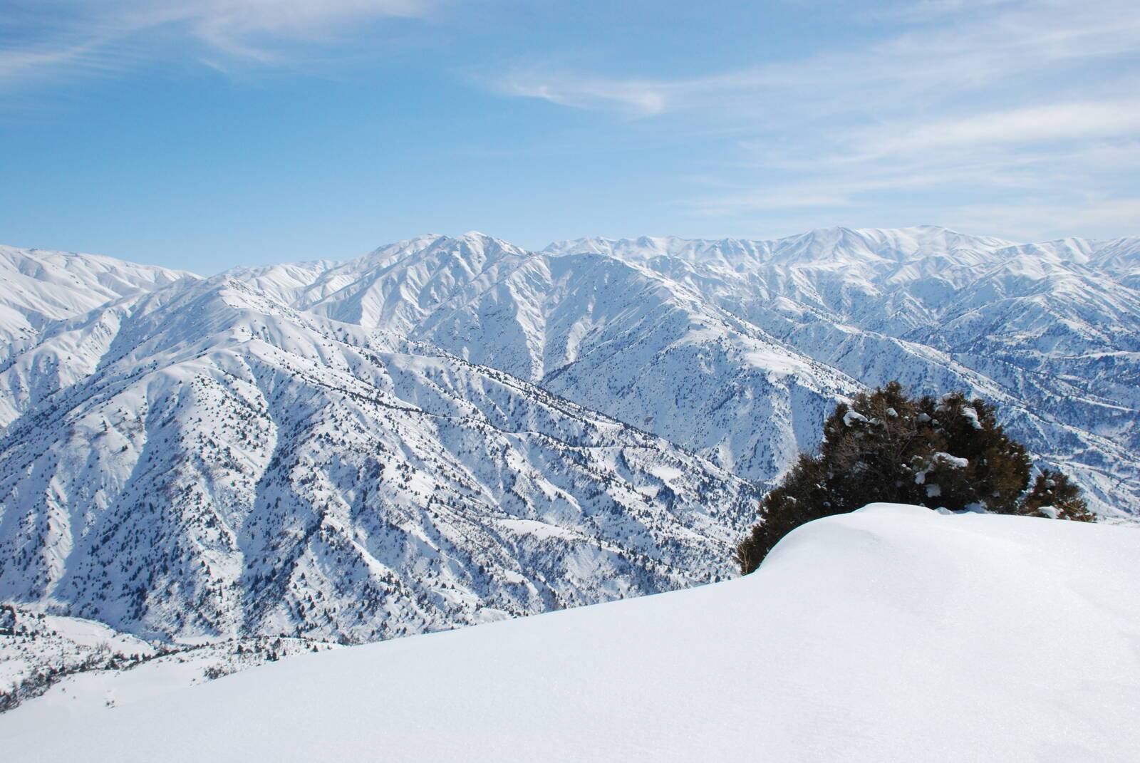 Горнолыжные склона Узбекистана, вид с трассы Бельдерсая