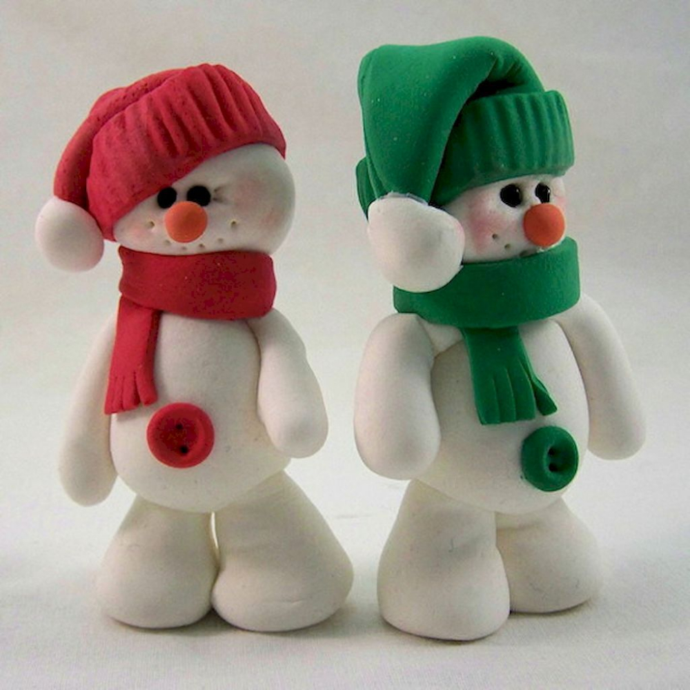 Простейшим вариантом будет слепить снеговика, ведь для этого вам понадобятся лишь три шара разного размера, самый большой – для опоры, маленький – для головы. Добавьте ему морковный нос в виде небольшого оранжевого конуса, и ваш снеговик готов. Руки можно сделать белыми кружками или попробовать изобразить ветки из коричневого пластилина. А если вам все еще не хватает оригинальности, наденьте на вашего снеговика пластилиновую новогоднюю шапку или ведерко в качестве головного убора.