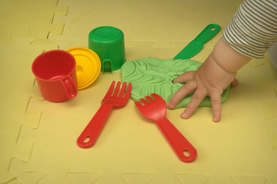 Познакомьте ребенка с тестом (или пластилином в зависимости от возраста малыша). Дайте возможность: