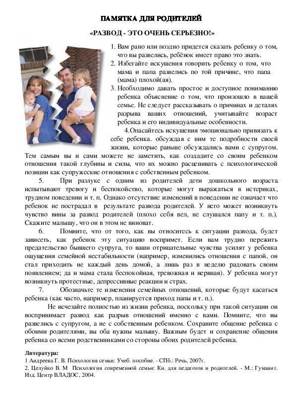Совет может дать психолог. Расскажите, что грядут перемены. Сделайте акцент на любовь. Скажите, что не бросите собственных крошек, сможете позаботиться, уберечь от бед. Слова необходимо произносить искренне. Детям нельзя лгать, иначе потеряете их доверие. Объясните, что причиной развода не являются плохие школьные оценки или поведение. Подростка не должно одолевать чувство вины. Разговаривая, избегайте эмоциональных проявлений. Слёзы, истерики, крики пугают детей.