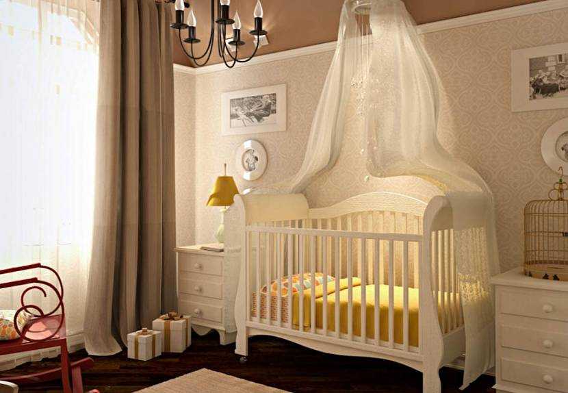 Совмещение стилей – классический, ампир и оригинальная подсветка кроватки малышаИсточник decorationinfo.ru