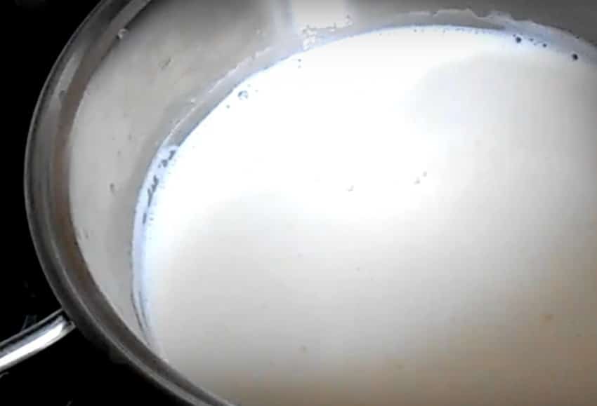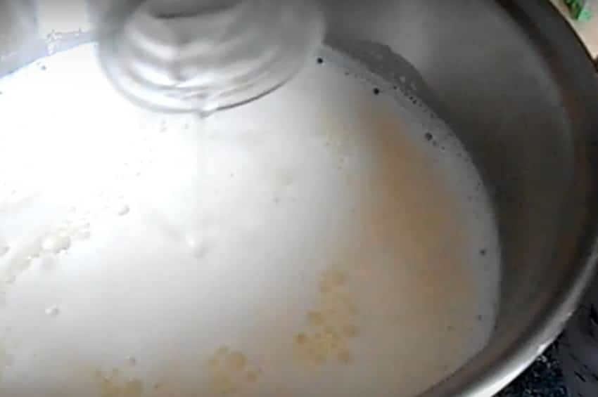 - 200-300 г. напитка подогревайте на медленном огне до тех пор, пока не отойдет сыворотка.