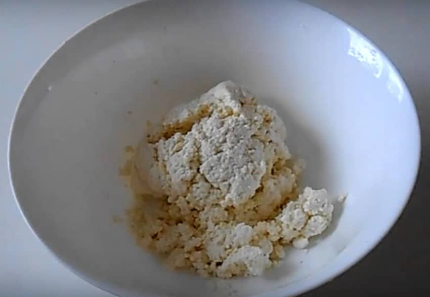 - Хорошенько размешайте ваш начинающий творог.
