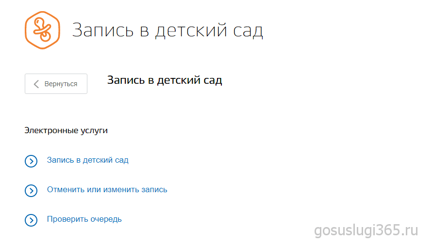 Далее вы попадете на информационную страницу, где рассказывается о том, как правильно записать ребенка в очередь на место в детском саду, и уточняется, что можно не только занимать, но и проверять очередь в сад через «Госуслуги».