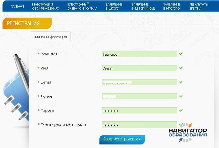 Ввод персональных данных о родителе предусматривает предоставление информации о родителе, который зарегистрирован на сайте: