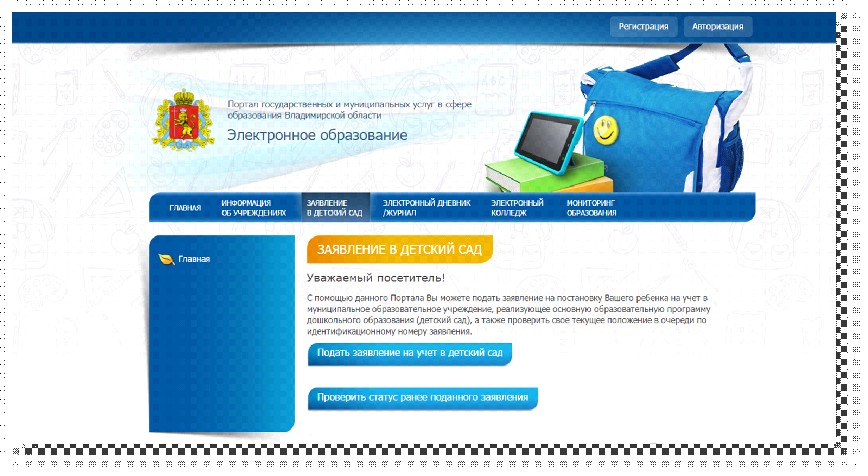 Далее вы попадете на информационную страницу, где рассказывается о том, как правильно записать ребенка в очередь на место в детском саду, и уточняется, что можно не только занимать, но и проверять очередь в сад через «Госуслуги».