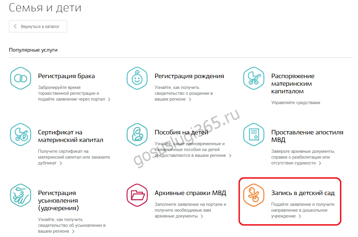 Итак, если у вас нет времени на посещение Управления образования или многофункционального центра, можно осуществить запись в детский сад через портал Gosuslugi.ru.