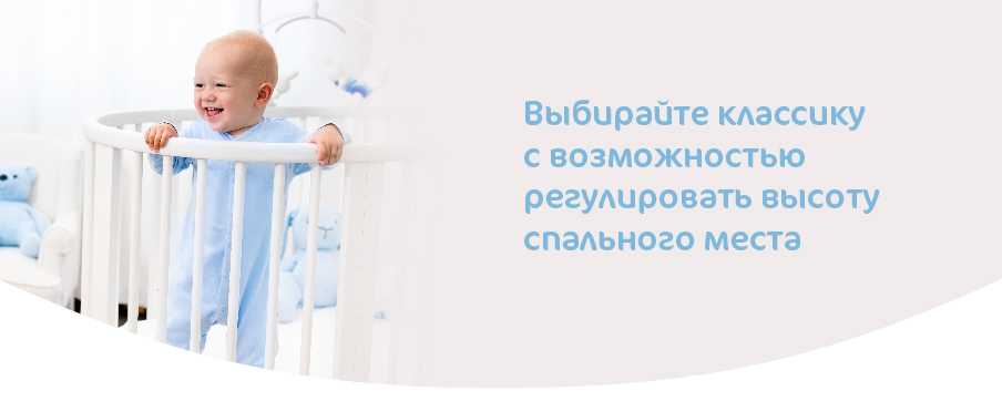 Выбирайте классику с возможностью регулировать высоту спального места. Чтобы минимизировать воздействие на спину родителей, для новорожденных деток спальное место ставят в самое высокое положение. Вместе с тем, как малыш начинает самостоятельно садиться и вставать, его опускают ниже, исходя из техники безопасности. Также классические кроватки могут иметь колесики для передвижения и съёмные бортики, благодаря чему детскую кроватку можно вплотную приставить к родительской.