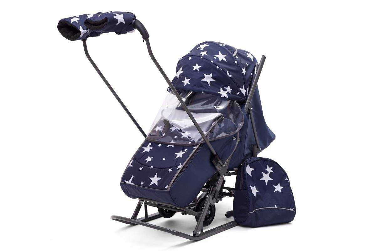 Санки-коляска представляют собой гибрид прогулочной коляски и санок. От коляски они взяли удобства: