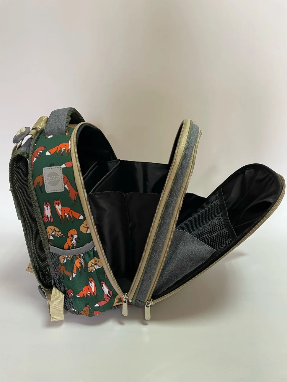 В таком ранце школьные принадлежности можно разложить по разным отделениям. Перегородки защитят тетради от сминания