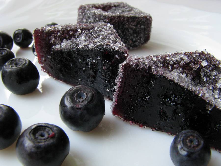 . Ягод черники нужно 250 г, воды 200 мл, желатина 5 листов и 100 мл кленового сиропа. Для начала нужно сварить ягоды на медленном огне. Ягоды должны все полопаться. После чего добавляем сироп и желатин. Доводим раствор до кипения и заливаем в формочки.