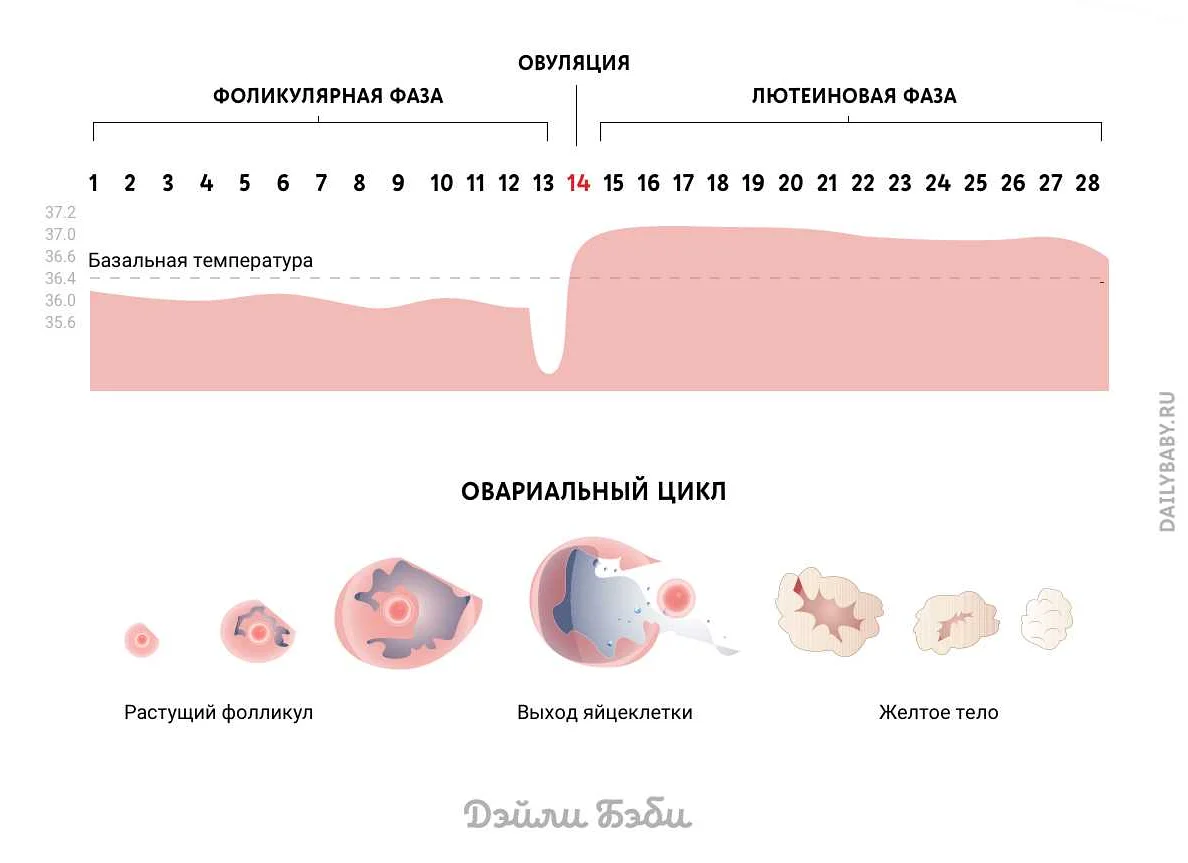Если в норме базальная температура не превышает 36,9-37 С, то в период разрыва фолликула и выхода яйцеклетки в маточную трубу наблюдается повышение до 37,2-37,5 С. Повышение температуры указывает на благоприятное время для зачатия.