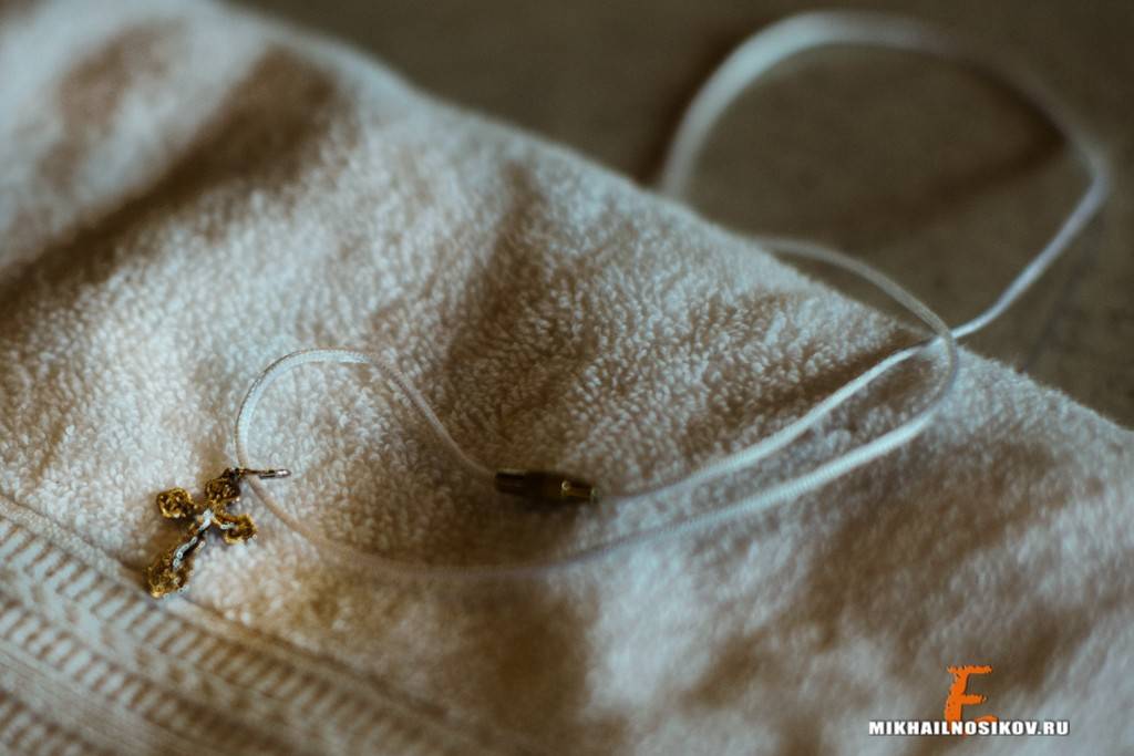 - крестный отец или мать принимают ребенка из рук священника и оборачивают в полотенце — крыжму, вытирают;