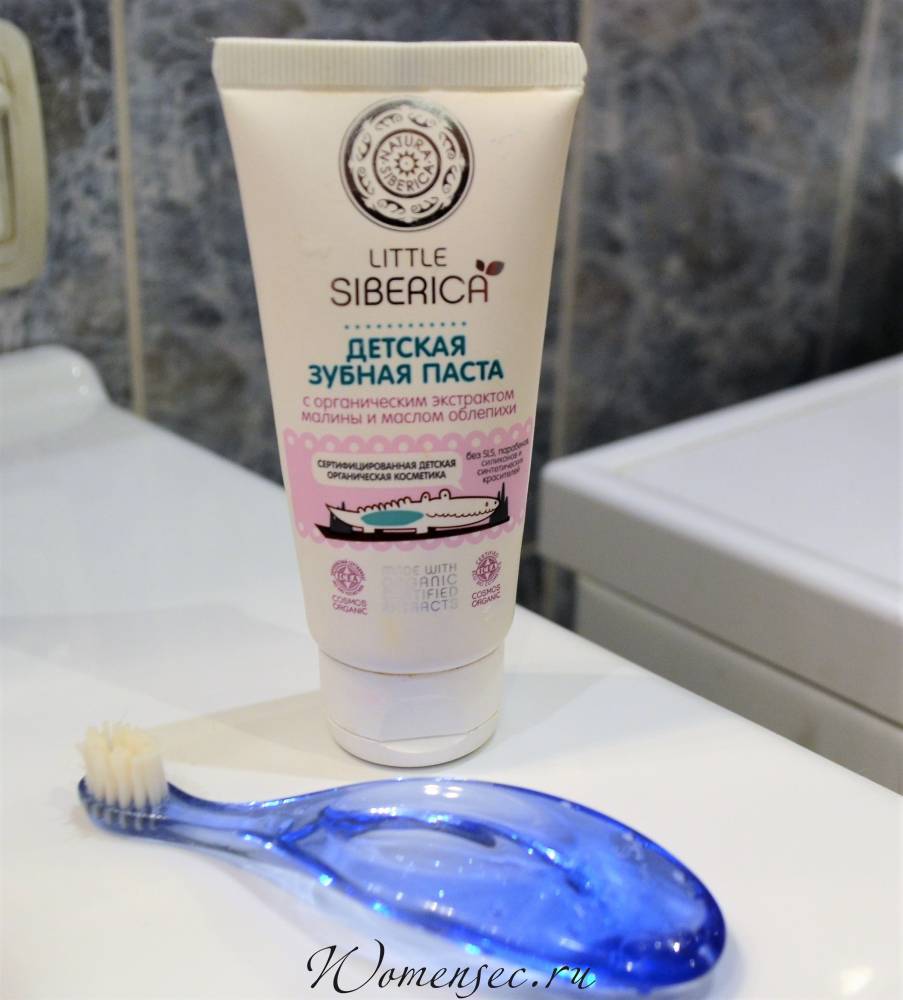 Детская зубная паста с органическим экстрактом малины NATURA SIBERICA с 2-3 лет, так как все-таки содержит Sodium Coco-Sulfate (родственник SLS) и Sodium Benzoate.”