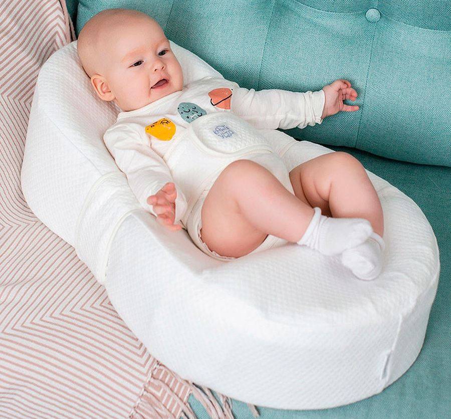 - значительно уменьшает вероятность появления плагиоцефалии у грудничка. Деформация мягких костей черепа возникает, когда ребенок спит на классическом плоском матрасе. От этого сегмент черепа на затылке младенца становится плоским или асимметричным, если малыш привыкает лежать с головой, повернутой в одну сторону. Ортопедический кокон для сна, или гнездышко, для новорожденных помогает ребенку держать голову приподнятой и вертеть ею по своему желанию;