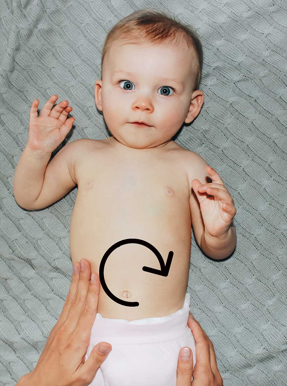 Гладьте живот ребенка по часовой стрелке, без усилия. Фото: Екатерина Юсупова
